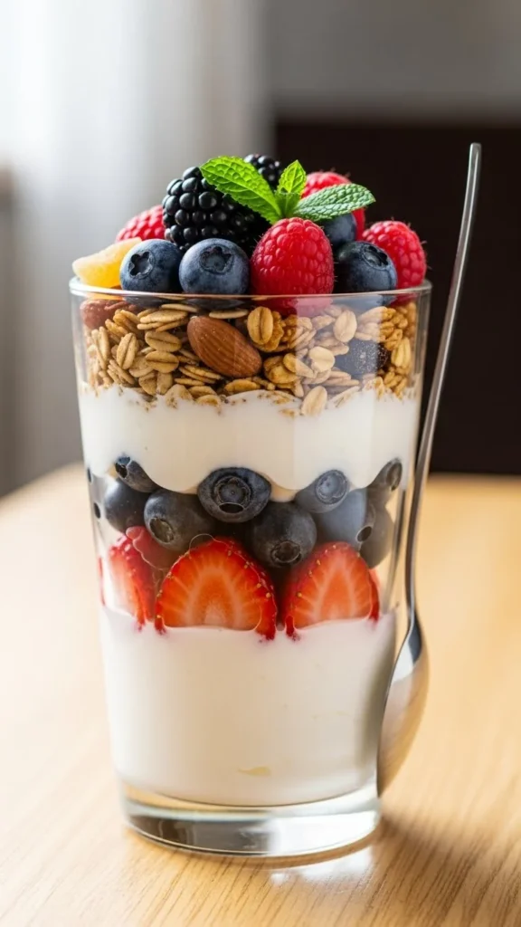 1. Layer yogurt, berries, and granola.