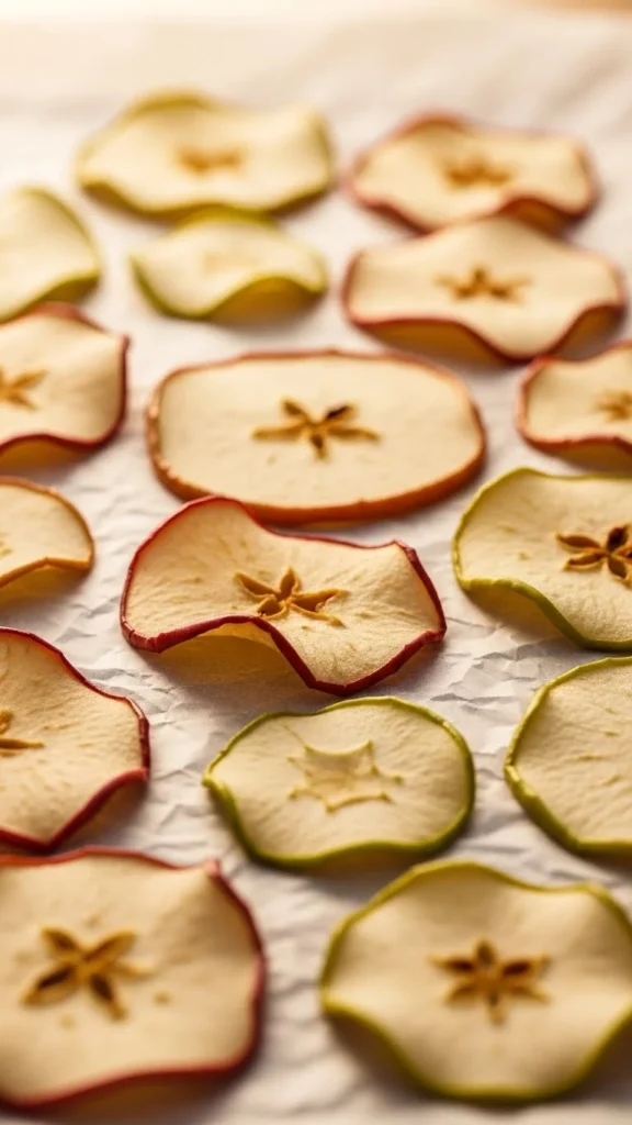These crispy apple chips taste warm and sweet.