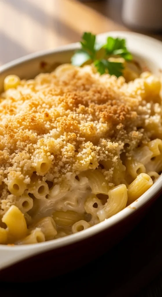 Use short pasta shapes for even coverage. This gratin feeds groups easily and stays warm on the table.
