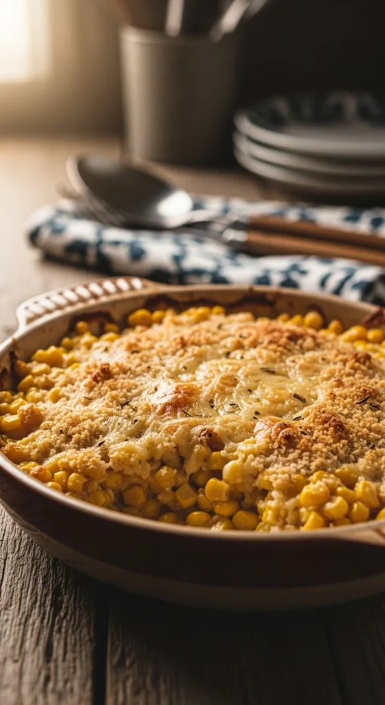 Frozen corn works well and saves time. This gratin suits family-style serving.