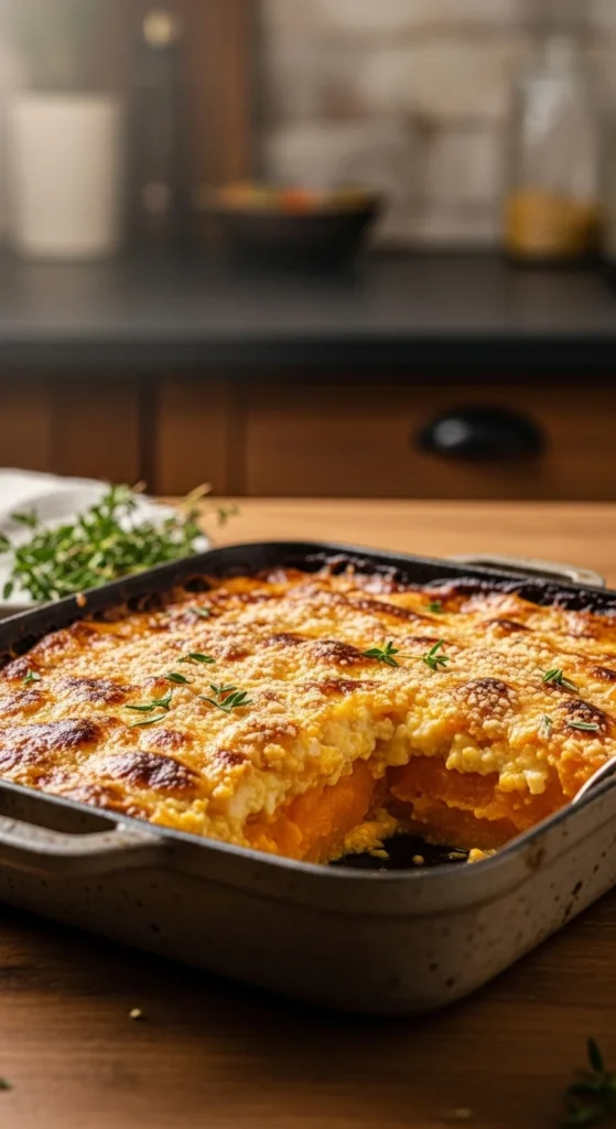 Sweet potatoes add gentle sweetness and color. Cheese brings balance, creating a dish that feels hearty without heaviness.
