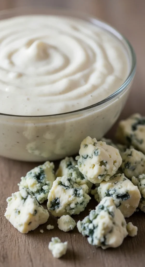 Blue cheese adds bold tang. Greek yogurt lightens the base while keeping richness.