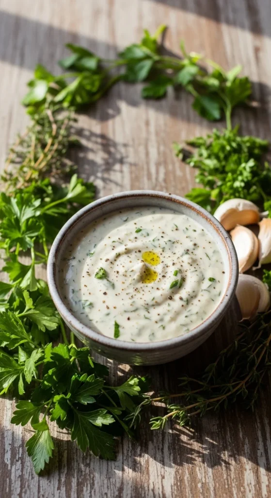 Garlic herb dressing offers classic flavor that pairs with nearly any salad. Fresh herbs give it brightness, while the creamy base adds body. It works well as both dressing and dip.