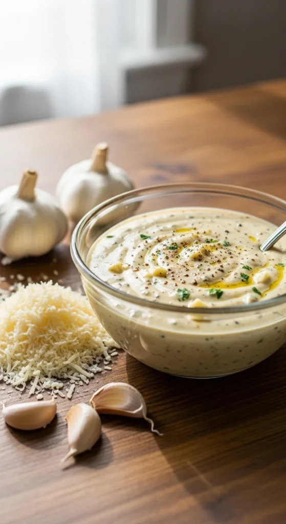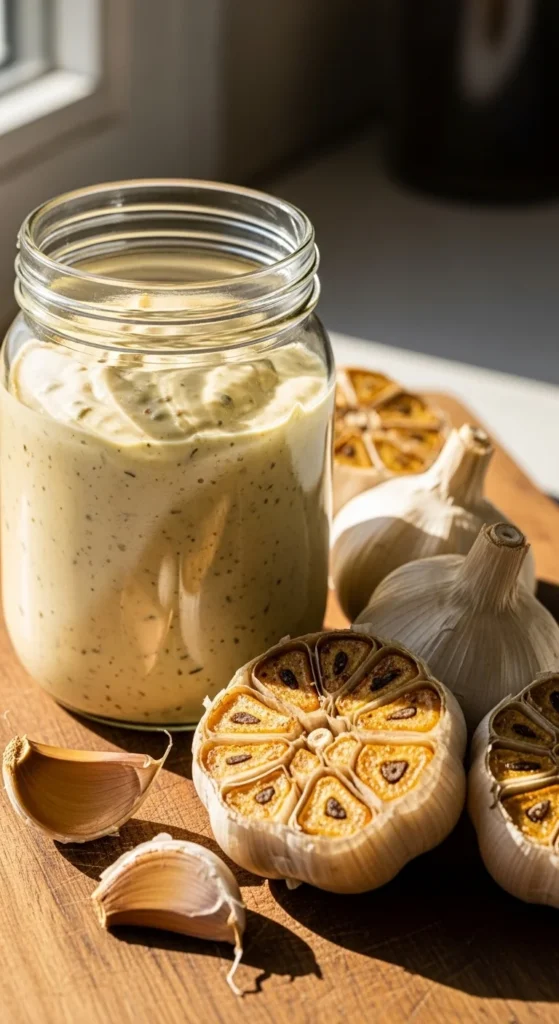 Roasted garlic brings mellow sweetness. It removes the harsh bite of raw garlic while adding depth. This dressing feels rich but balanced.
