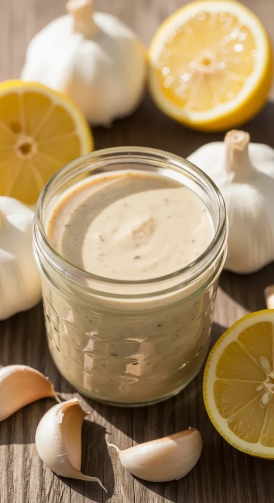 Tahini creates rich creaminess without dairy. Garlic and lemon keep the flavor bright. This dressing works well for plant-based meals.