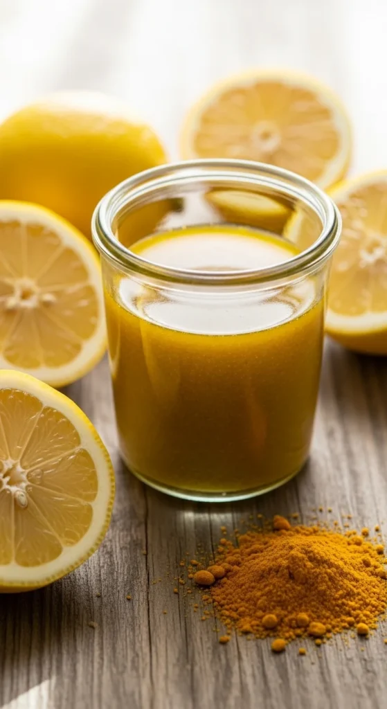 Whisk Greek yogurt, lemon juice, olive oil, honey, turmeric, and a pinch of black pepper. Stir until smooth and evenly colored.