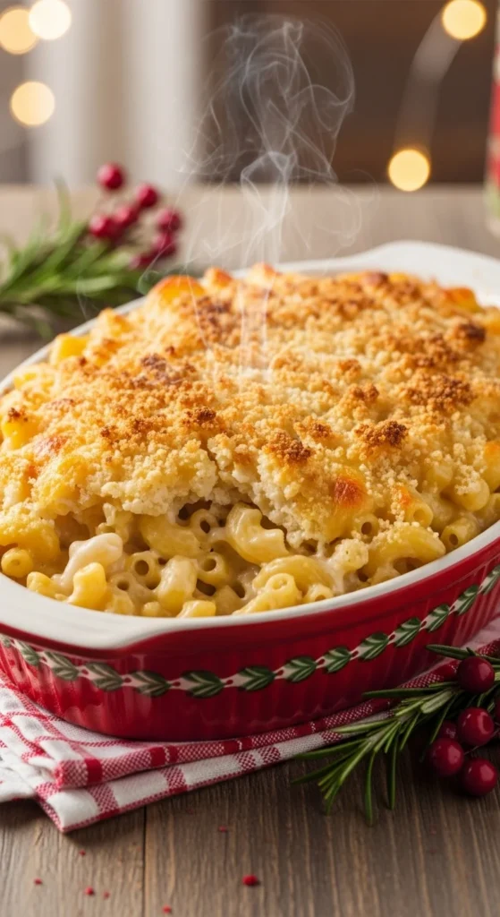 Classic holiday side with creamy sauce and crunchy topping.