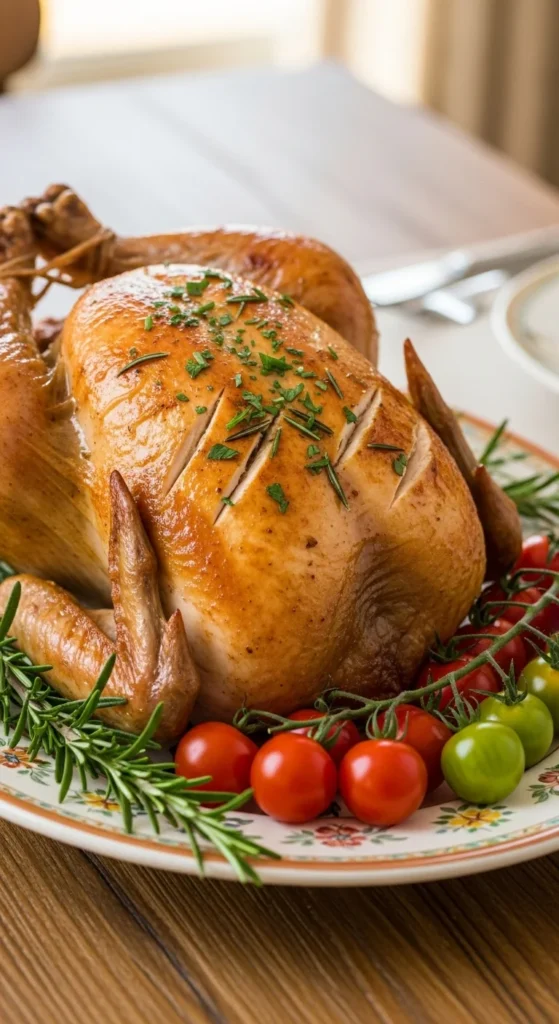 - Roast 1.5–2 hours until internal temperature reaches 75°C (165°F).