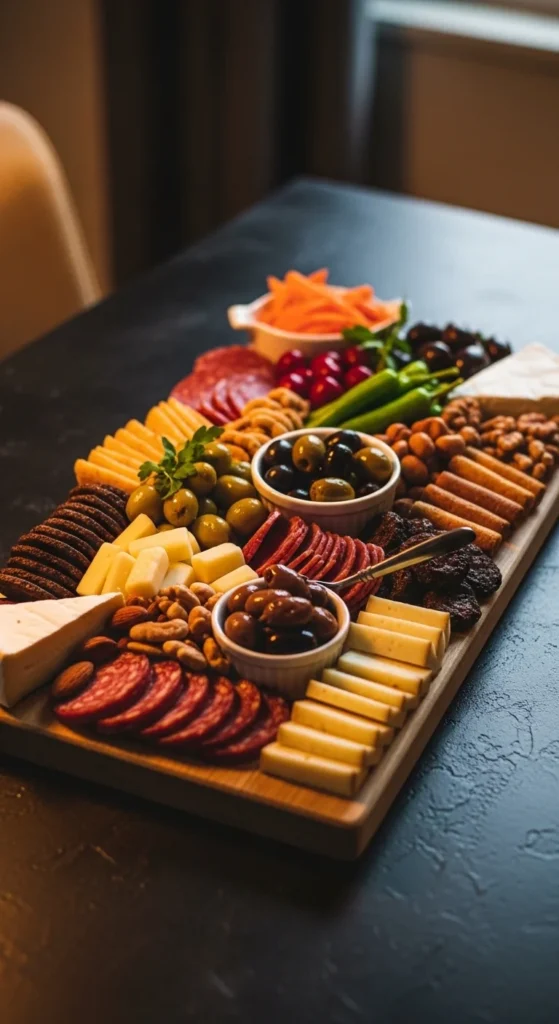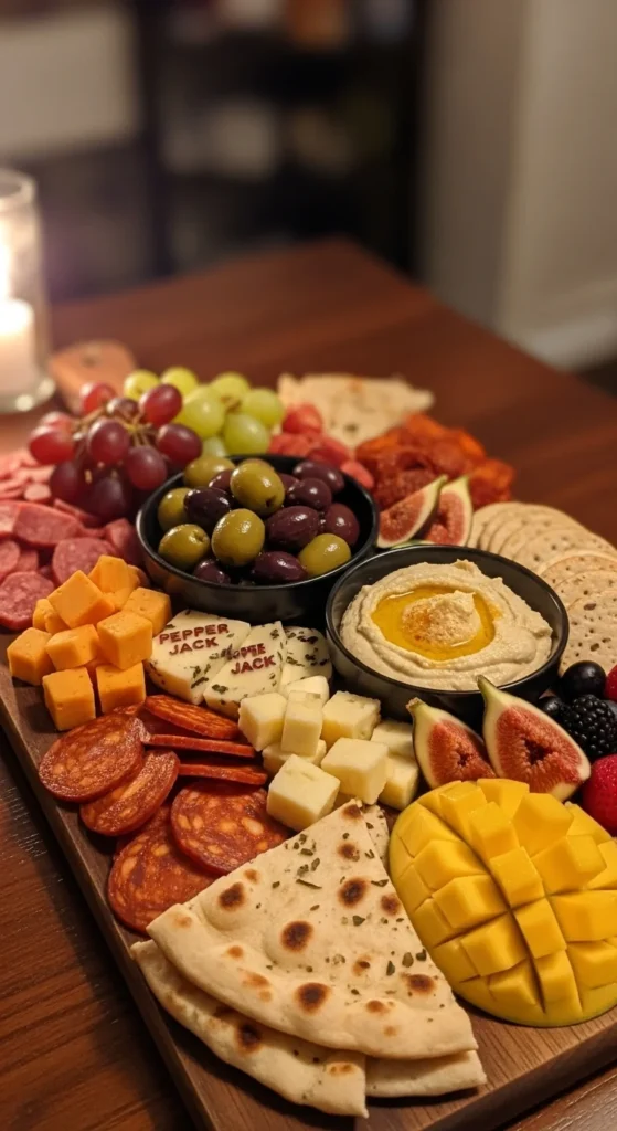 You can include marinated tofu or stuffed olives for extra variety. This board suits mixed-diet gatherings.