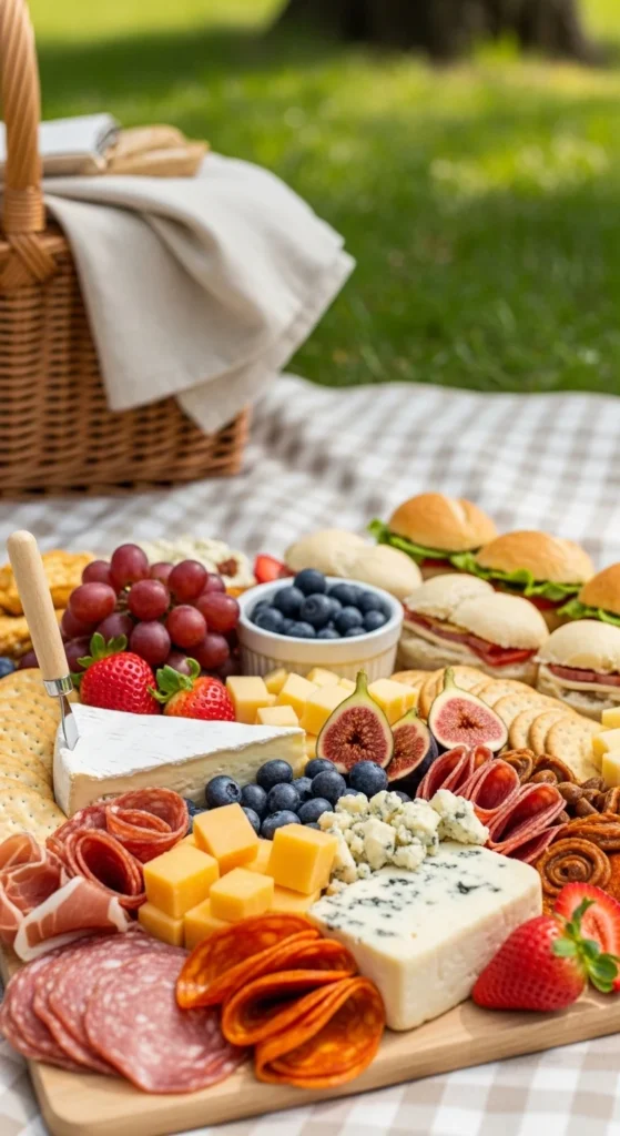 This board is designed for outdoor gatherings. It focuses on sturdy ingredients that travel well.