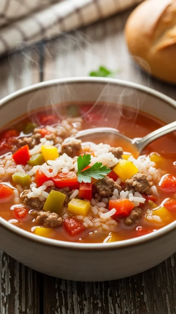 1. Slow Cooker Stuffed Pepper Soup