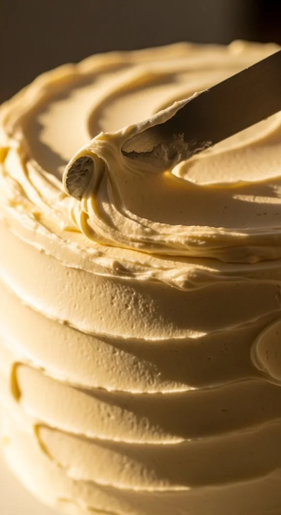 This step keeps crumbs from showing through and makes the final coat much easier to apply. If your cake layers look uneven, level them before stacking. Even layers immediately improve the overall appearance of the cake.