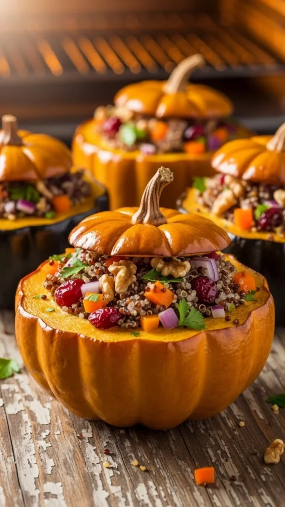 - Quinoa‑Stuffed Acorn Squash with Cranberries & Walnuts (Vegetarian, Gluten‑Free)