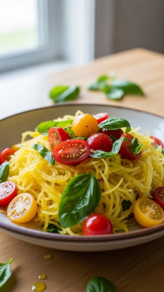 - Spaghetti Squash Primavera with Cherry Tomatoes & Basil (Vegetarian, Low‑Carb)