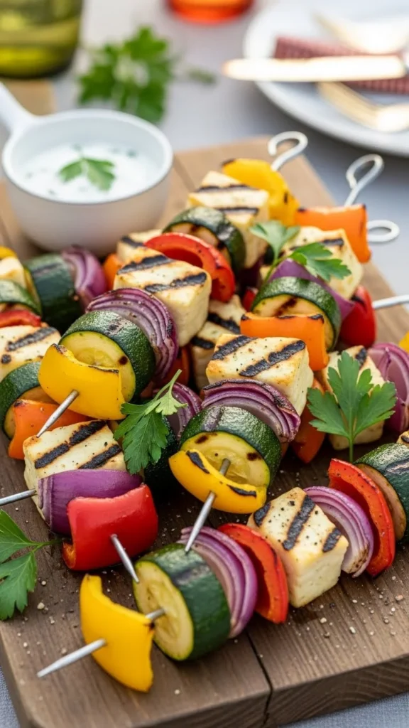 - Grilled Vegetable & Halloumi Skewers with Lemon-Herb Marinade (Vegetarian)