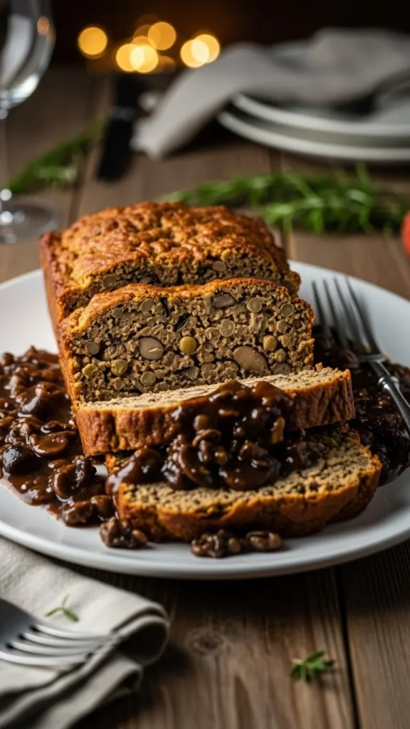 How to Serve It: Slice loaf, pour mushroom gravy over plates, garnish with fresh herbs, serve with seasonal vegetables or mashed potatoes.