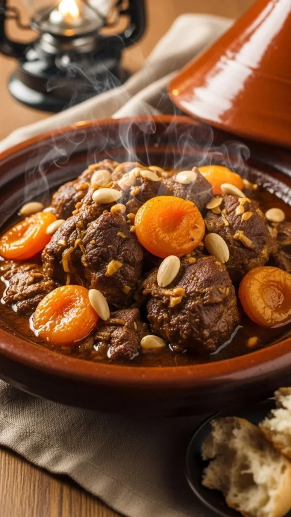 - Preheat oven to 160 °C (320 °F). In a heavy oven‑proof pot or tagine, heat olive oil over medium-high flame. Brown lamb chunks in batches ~3 minutes per side, transfer to plate.