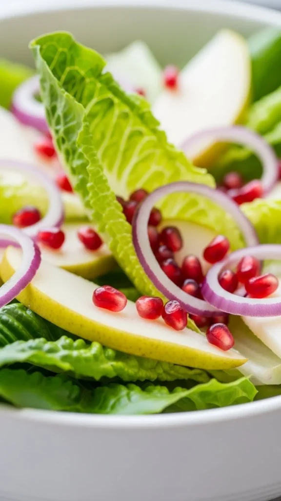 13. Romaine, Pear & Pomegranate Salad with Honey‑Mustard Dressing