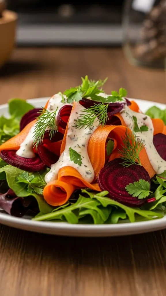 15. Roasted Carrot & Beetroot Salad with Citrus Yogurt Dressing