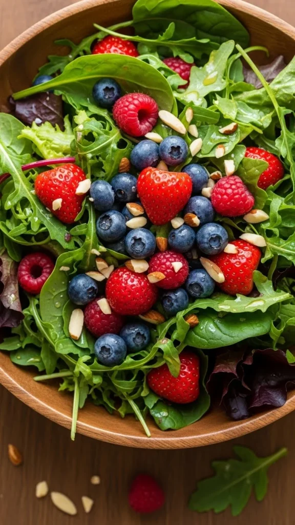 21. Mixed Berry & Baby Greens Salad with Orange‑Poppy Seed Dressing