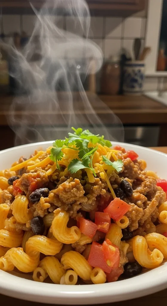 Healthy taco pasta combines the cozy feel of a one-pot pasta dish with the bold flavors people love in tacos. It feels rich, hearty, and familiar, yet uses simple, lighter ingredients that still leave you satisfied. The balance of pasta, beans, and seasoned sauce makes it comforting without feeling heavy.