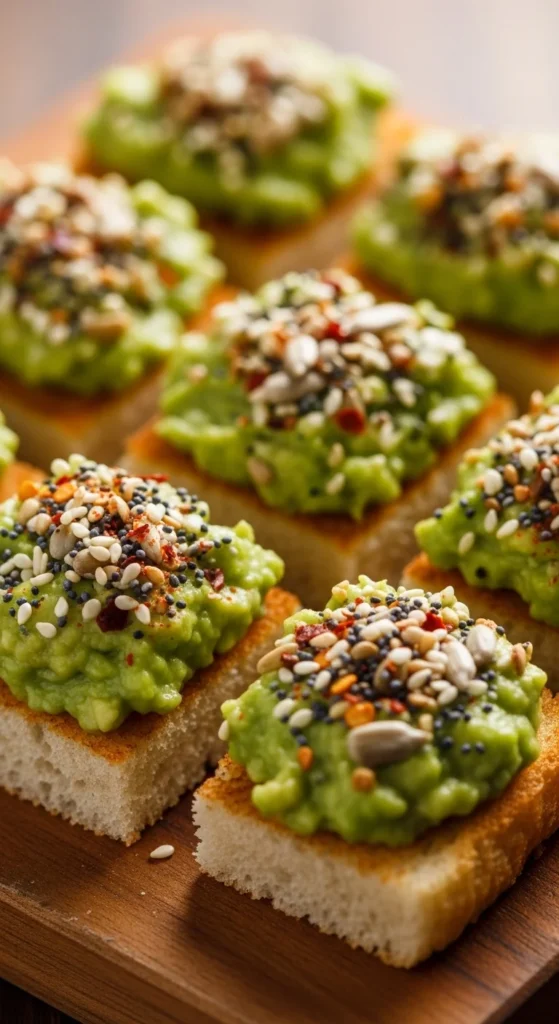 Mash avocado with salt and lemon. Spread on whole-grain toast and cut into squares.