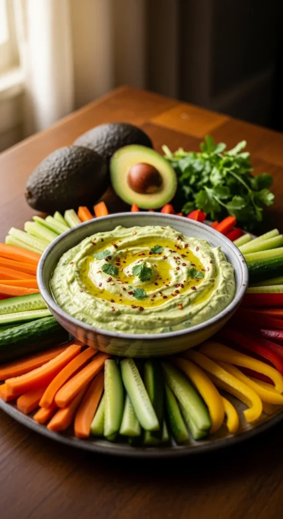 Blending avocado with Greek yogurt creates a creamy dip without heavy ingredients.