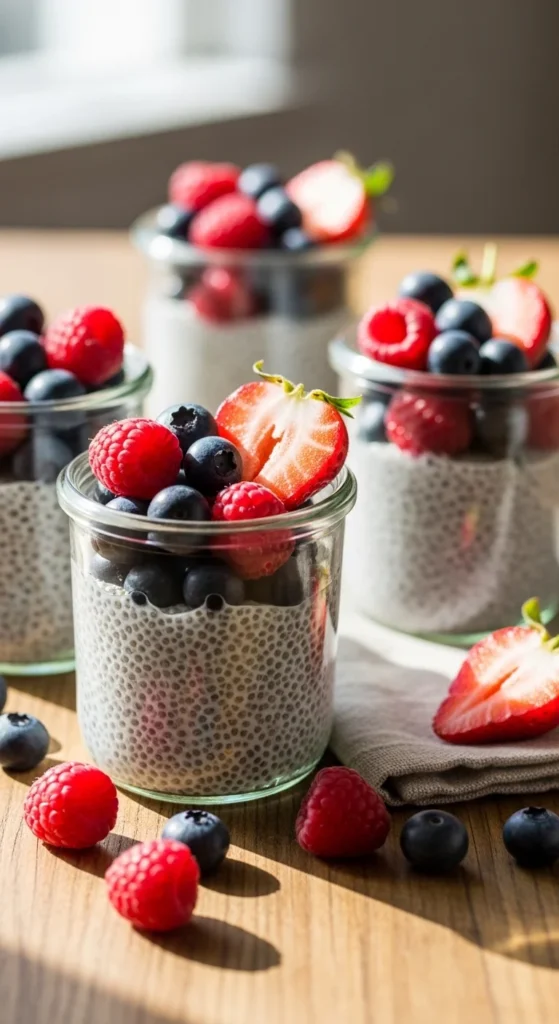 Chia pudding thickens naturally as the seeds absorb liquid, creating a creamy texture without cooking. It works well for make-ahead snacks that feel filling but light.