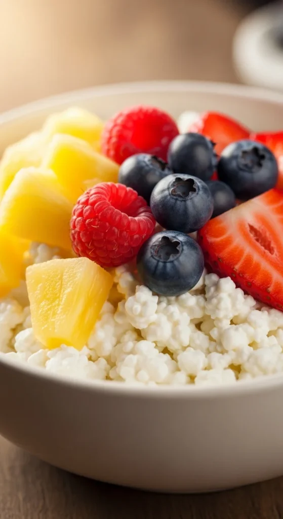 Cottage cheese brings protein and creaminess, while fruit adds sweetness and color.
