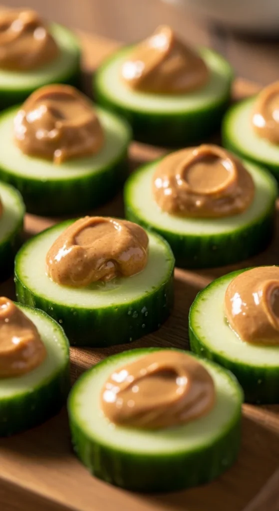 Cucumber almond butter boats create a refreshing crunch paired with rich creaminess. The contrast keeps this snack interesting and satisfying.