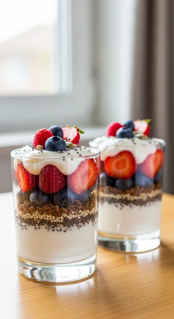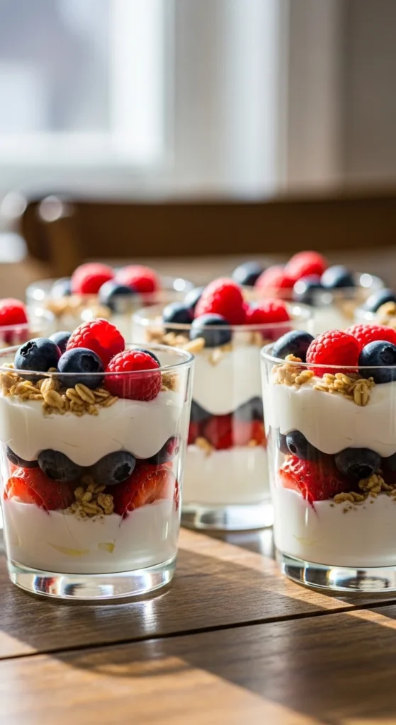 Protein yogurt parfait cups combine creamy texture with natural sweetness and crunch. They help keep hunger away longer while still feeling light.