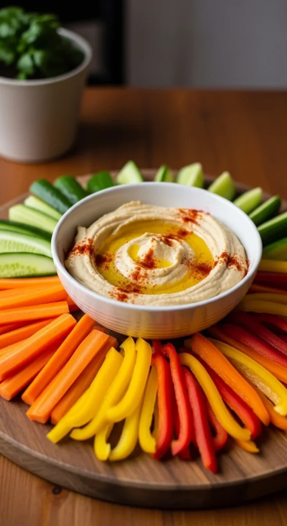 Crunchy vegetables paired with hummus create a filling snack that’s easy to assemble.