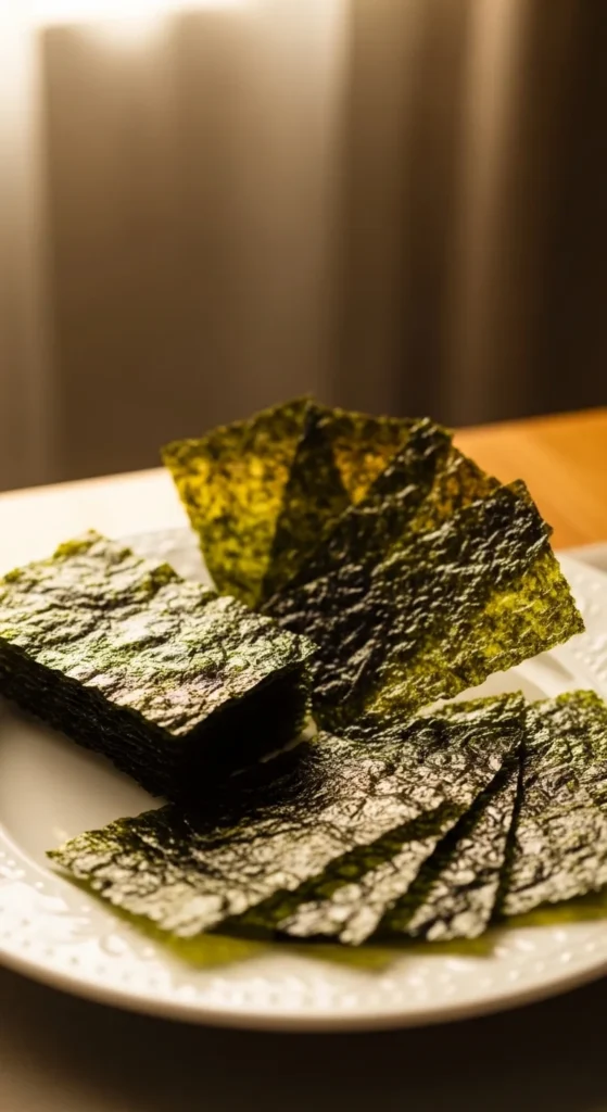 Seaweed snacks provide light, salty crunch with minimal calories.