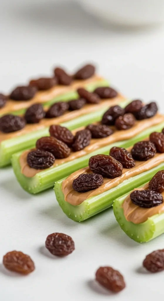 This classic snack has stayed popular for a reason. Celery adds crunch, nut butter adds creaminess, and raisins add sweetness. The textures keep kids interested.