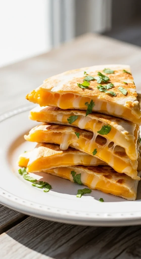Warm melted cheese inside a tortilla feels comforting. This snack works well when kids want something filling.