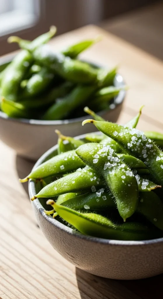 Steam frozen edamame according to package directions. Lightly sprinkle with salt once warm.