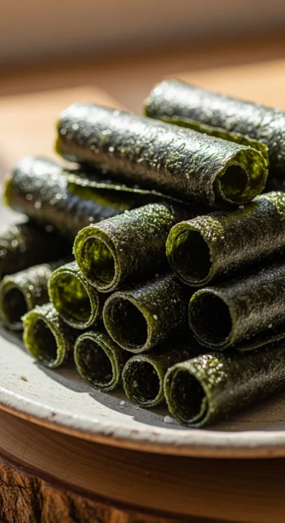 Seaweed snacks are thin, crispy, and salty. Many kids enjoy the crunchy texture. These work well as an alternative to chips.