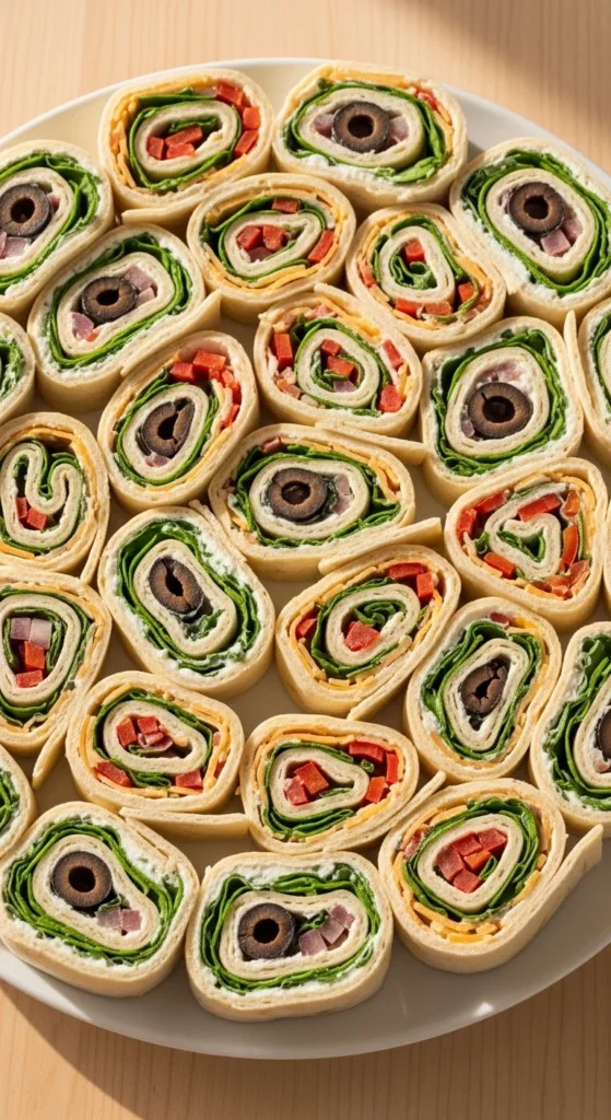 Mix canned tuna with mayo or Greek yogurt. Spread on tortillas. Roll and slice.