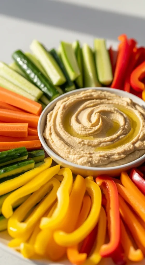 Dipping makes vegetables more exciting for kids. Hummus adds creaminess and mild flavor that pairs well with crunchy veggies. This snack quietly increases veggie intake.