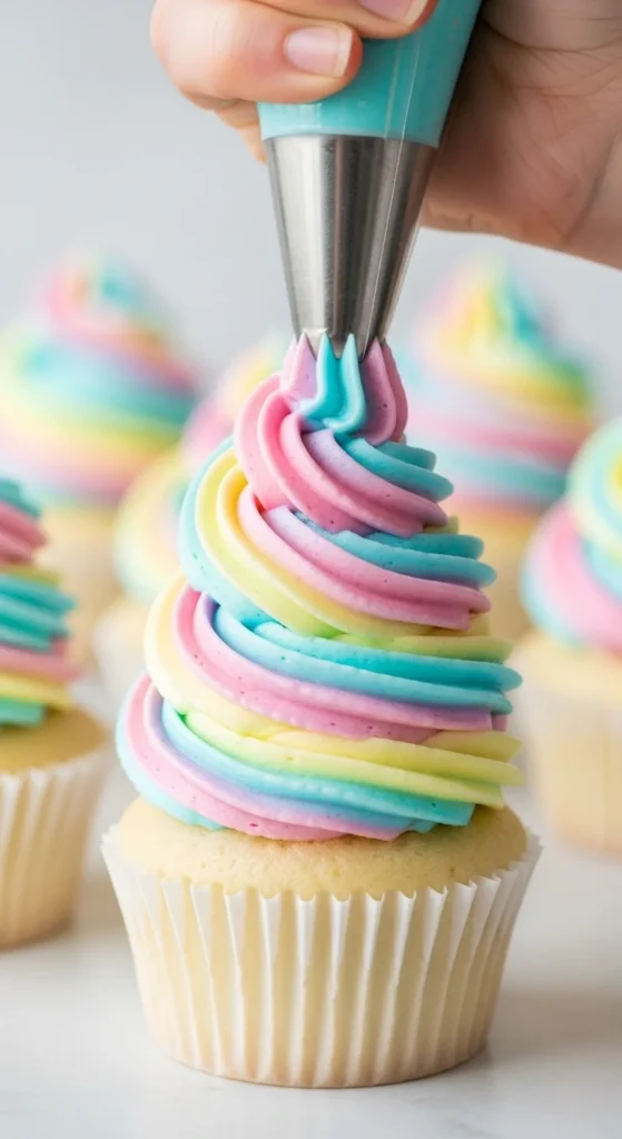 Soft pastels, monochrome tones, or ombré swirls make your cupcakes look cohesive and professional.