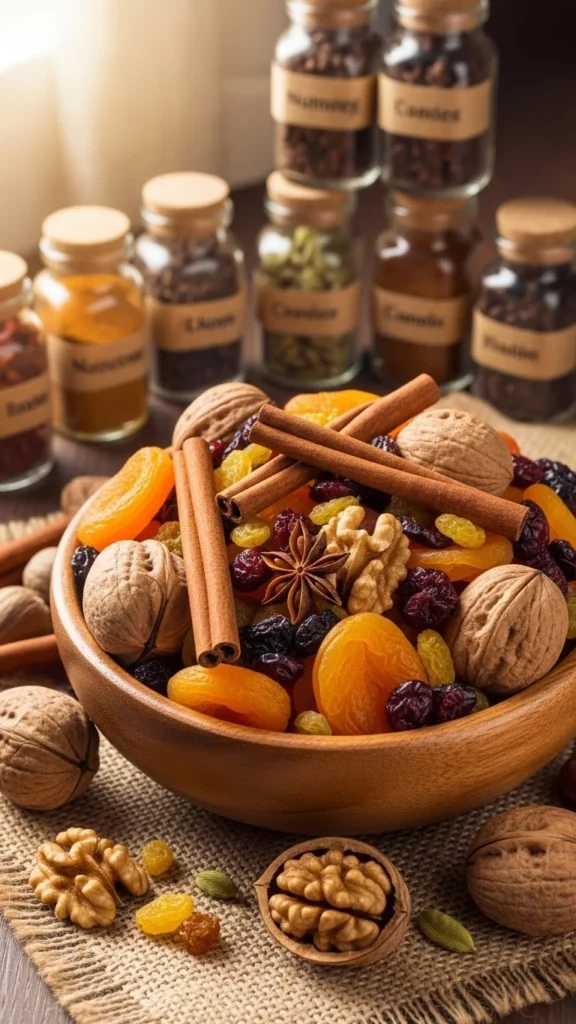 - Dried fruits: Raisins, currants, dried cranberries, figs, and apricots bring natural sweetness and texture.