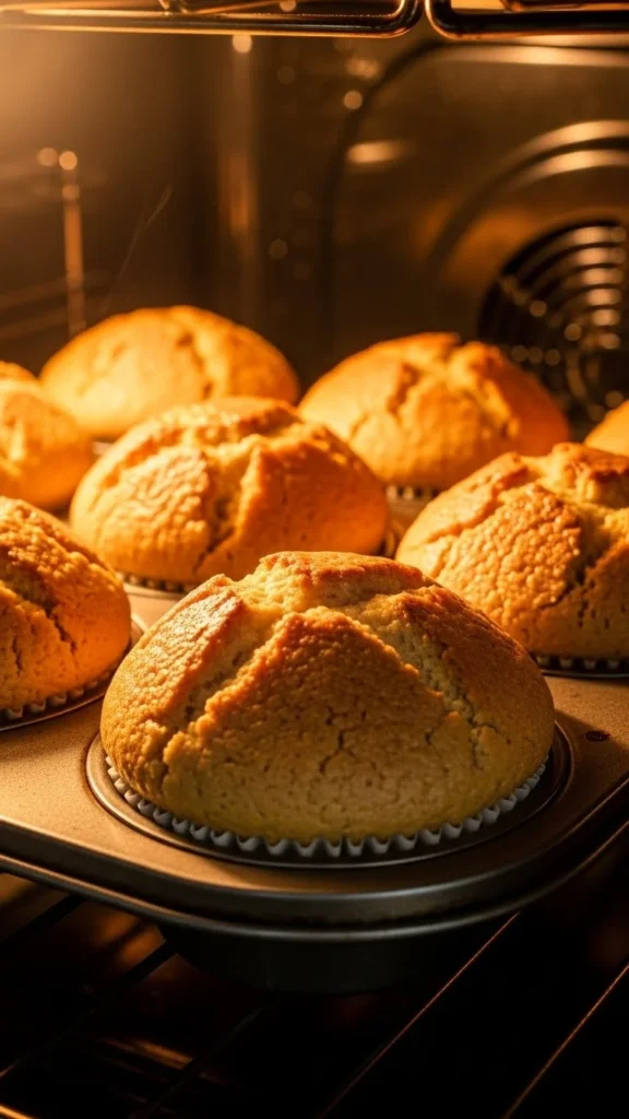 The high heat pushes the muffins upward quickly, forming that iconic domed top.