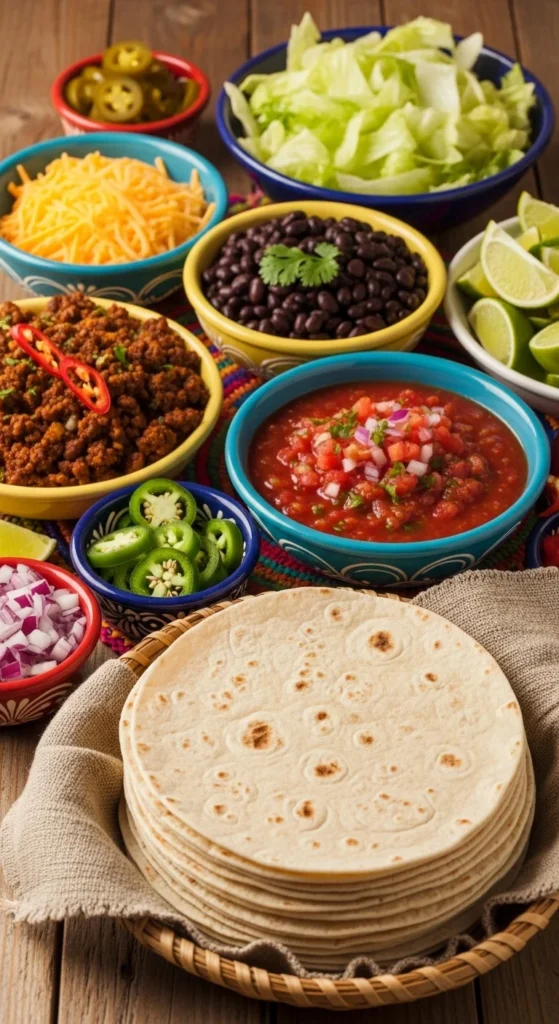 - Taco night: Let each person customize tacos with proteins, veggies, cheeses, and sauces.