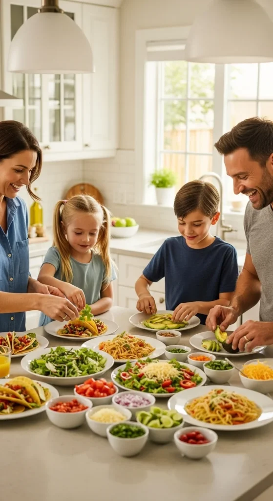 - DIY bowls: Set out grains, proteins, veggies, and sauces so family members can build their own plates.