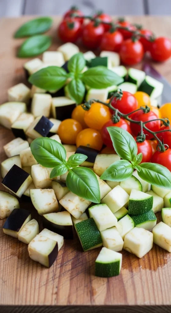 • Fresh vegetables (zucchini, tomatoes, eggplant, mushrooms)