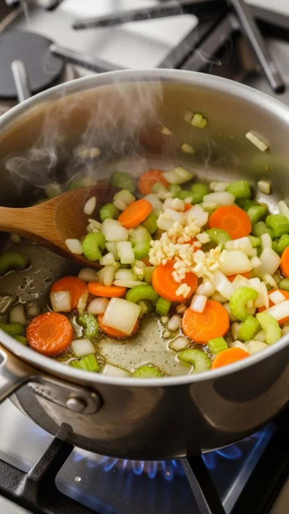 Heat a little olive oil or butter in a pot, then sauté the vegetables gently. Don’t rush this step—it builds the foundation of flavor without overpowering the soup.