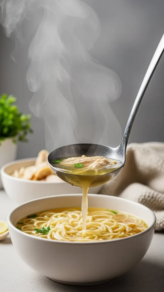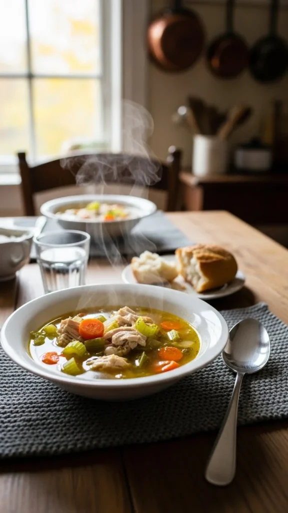 Chicken soup works because it’s warm, mild, and easy to digest. The broth hydrates, the protein satisfies, and the gentle flavors calm the senses.