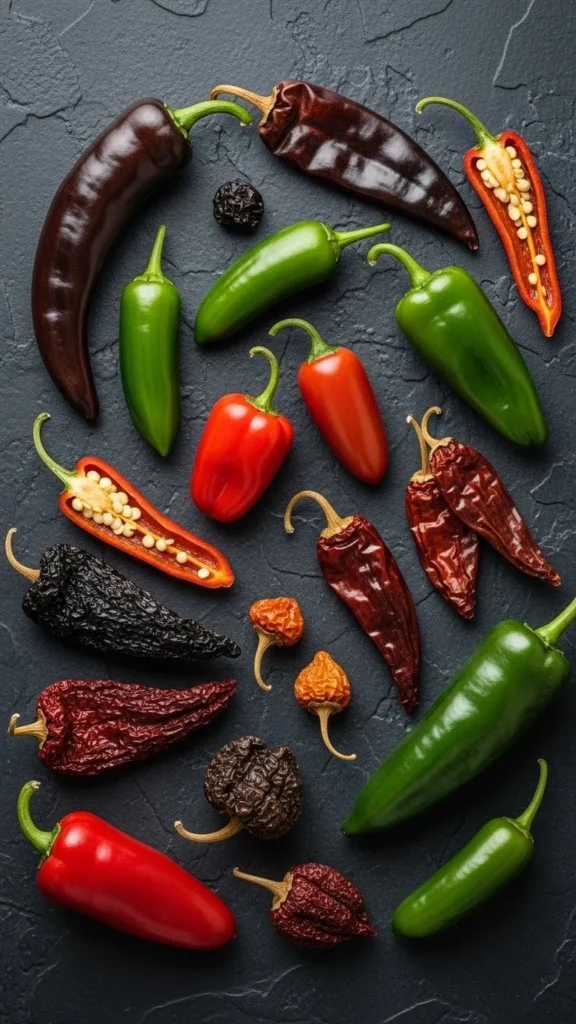 - Fresh chilies: jalapeño, serrano, habanero (heat levels vary!)