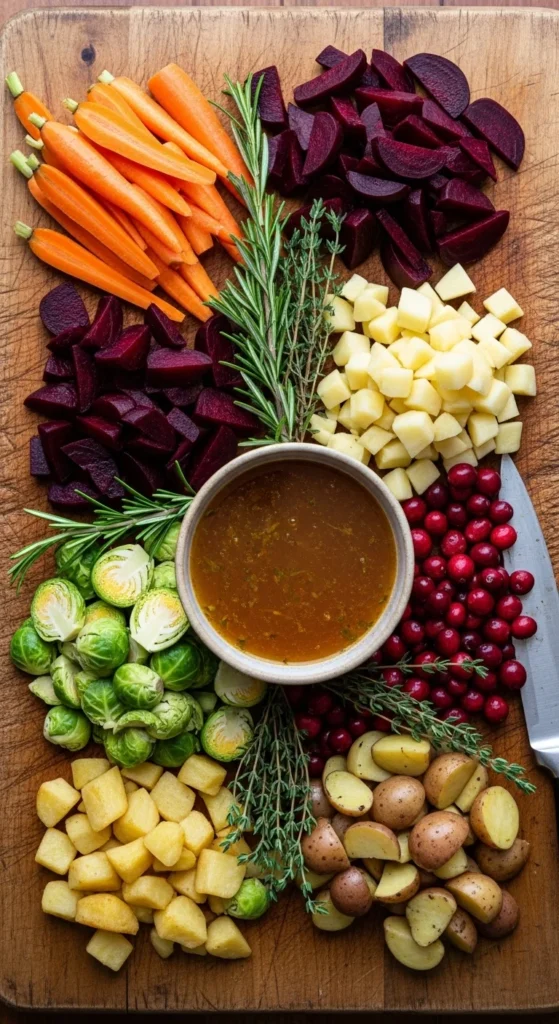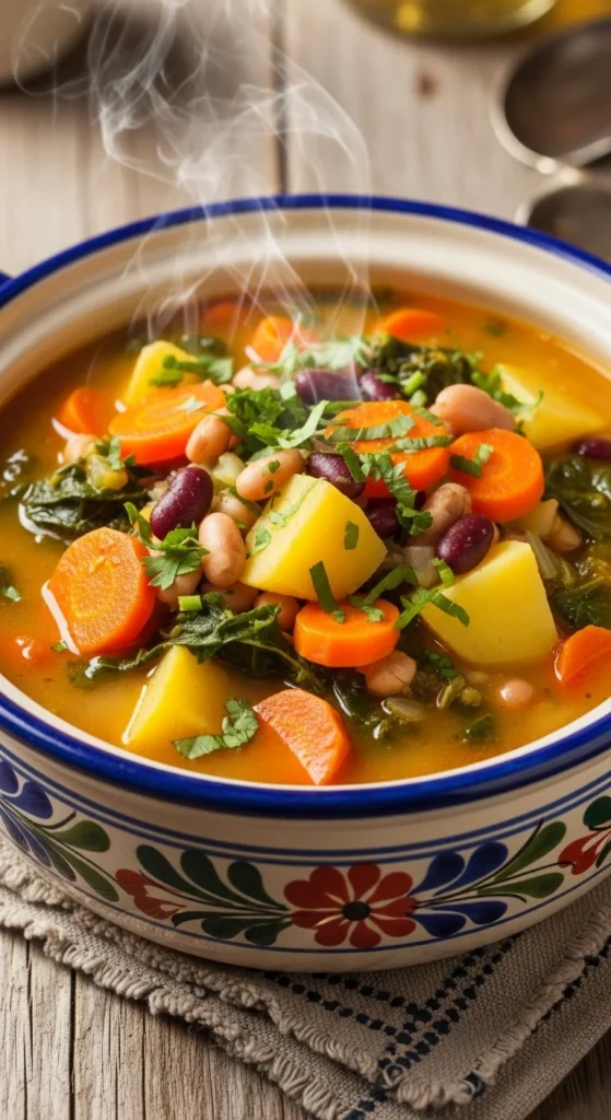 Vegetables: Carrots, celery, onions, potatoes, and seasonal vegetables like squash or kale.