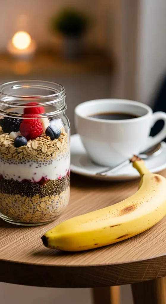 Overnight Oats in a Jar: Combine oats, milk, chia seeds, and fruit. Refrigerate overnight. Grab in the morning and go.
